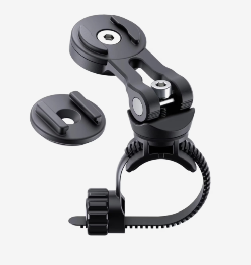 Flexible mobile phone attachment to the bike Tool-free attachment to bicycle handlebars or stem Mobile phone can be fixed in portrait or landscape format Arm for angle adjustment